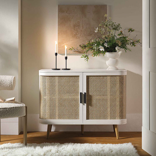 Izzy Curved Rattan 2-Door Small Sideboard, White