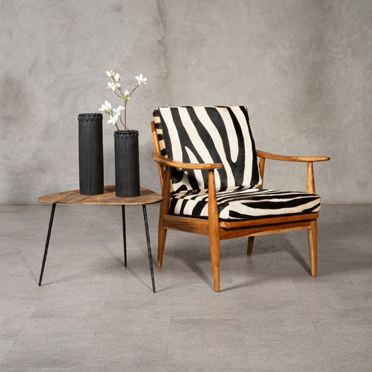 Kathy Accent Chair - Natural Teak & Zebra Print Leather