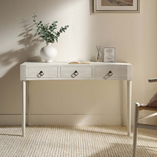 Thalia Concave 3 Drawer Bedside Table, Washed White