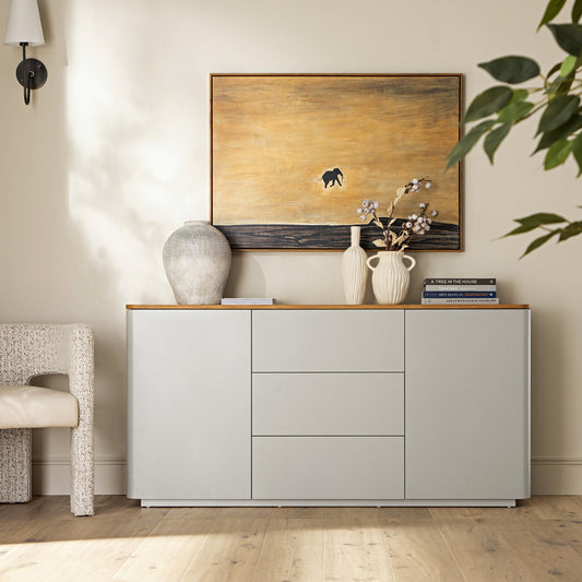 Agnes Curved Edge 150cm Wide Sideboard, Dove Grey with Oak Top