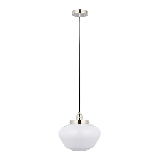 Chelsey 1 Light Pendant Light - Bright Nickel & Opal Glass