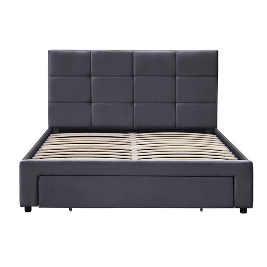 Julian King Bed Frame with Pull-out Storage Drawers Dark Grey Velvet