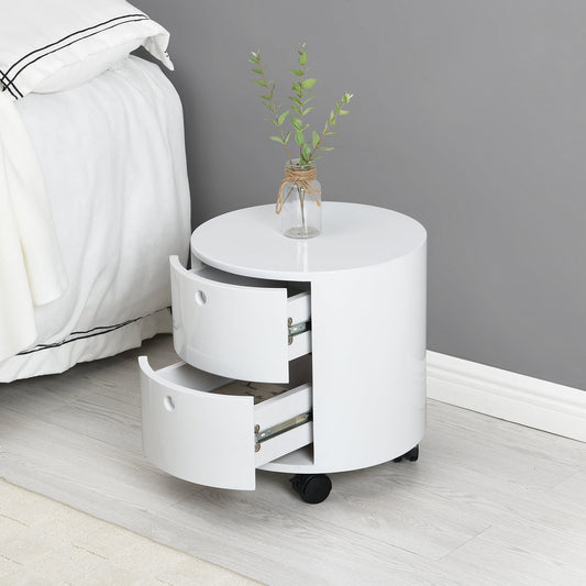 DOLIO Drum Chest Bedside Table, Barrel Side Table with Drawers High Gloss White 2 Drawer