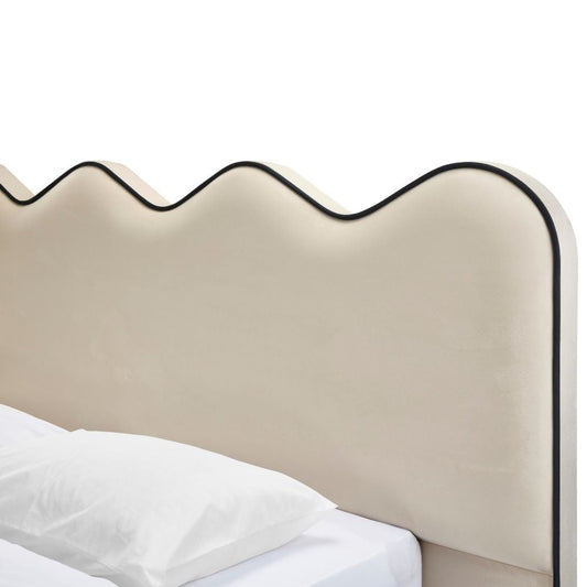 Nina Luxury Wave Contrast Piping Upholstered Bed - Cream