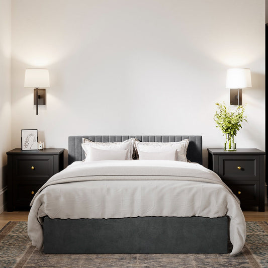 Camilla Luxury Panelled Upholstered Bed - Stone