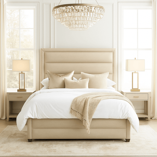 Juliet Luxury Panelled Upholstered Bed - Beige