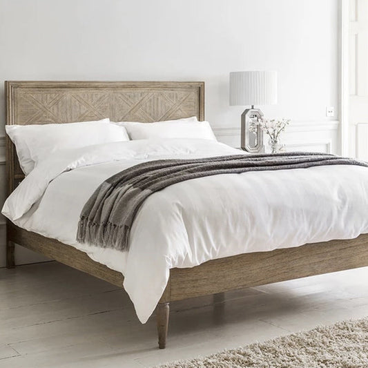 Chic Kingsize Bed - Linen & Weathered Wood