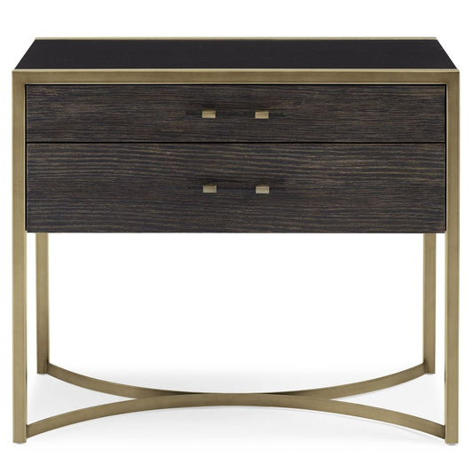 Ironville 2 Drawers Marble Top Bedside Table - Brass