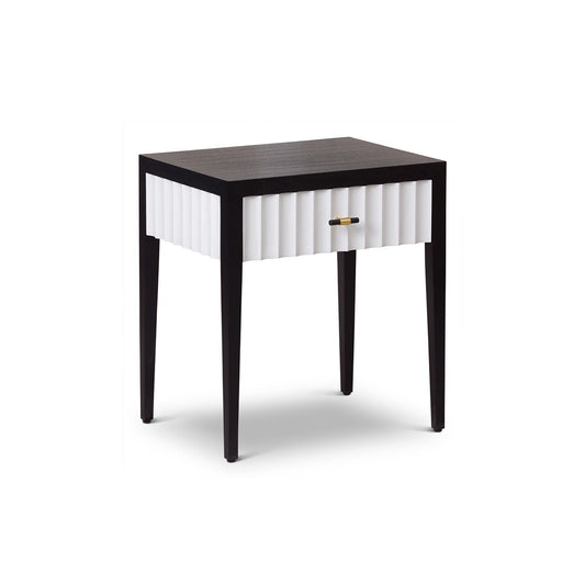 Malibu 1 Drawer Bedside Table - Black Satin Veneer & Hairline White