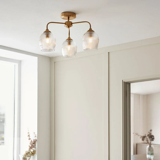 Ashcroft Ribbed Ceiling 3 Light - Brushed Aged Brass