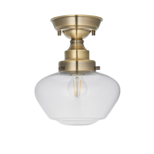 Chelsey 1 Light Ceiling Light - Antique Brass & Clear Glass