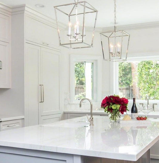 Melange Large Floating Disc Semi-Flush Chandelier - Polished Nickel with Alabaster