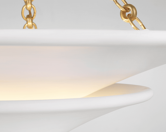 Mollino Medium Tiered Chandelier - Antique Brass with Plaster White Shade