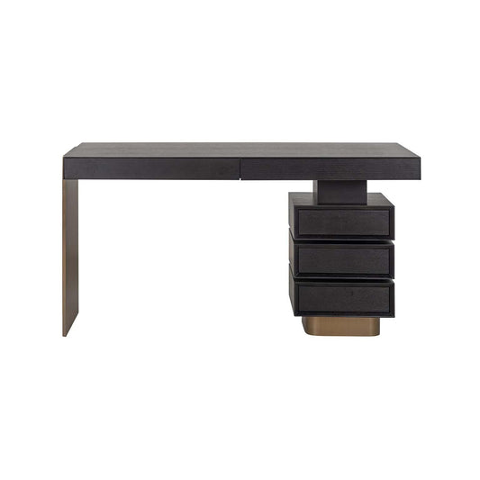 Grayson 2 Drawer Desk - Oak & Brushed Brass