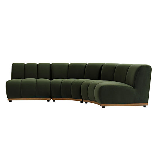 Granvia Moss Green Velvet Modular Sofa, 3-Seater L-Shaped Sofa
