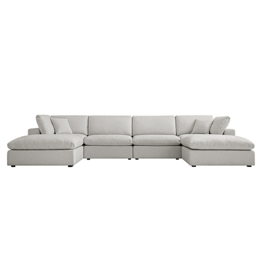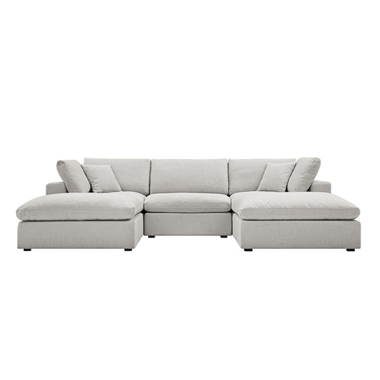 Lutyens Light Grey Linen Blend Modular Sofa, 6-Piece U-Shape Set