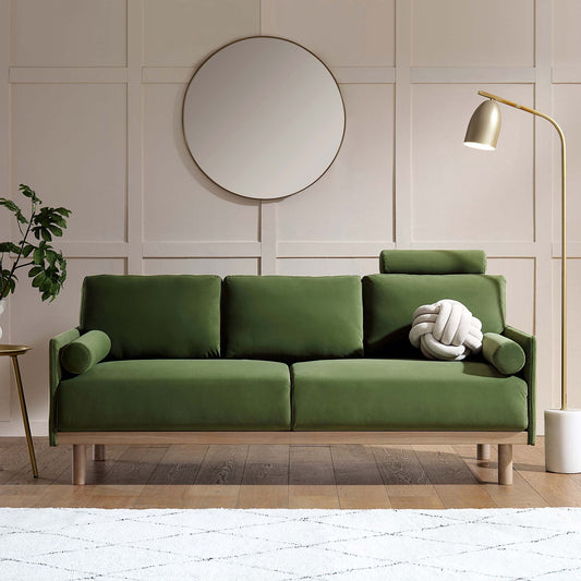 Timber Fern Green Velvet Sofa, 3-Seater