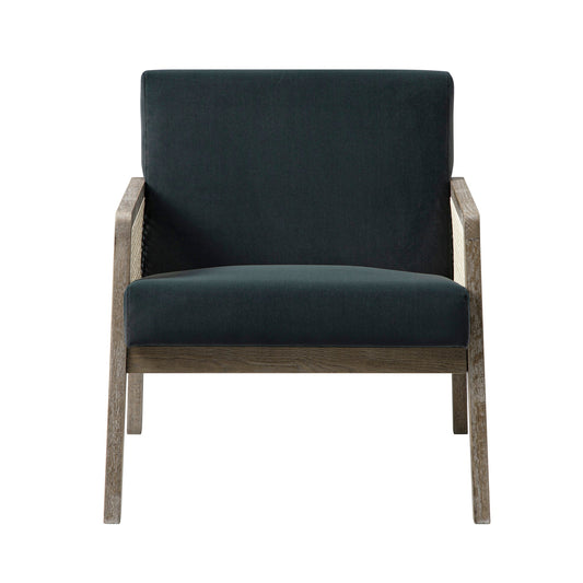 Fyne Aegean Blue Velvet Weathered Oak Frame Rattan Armchair