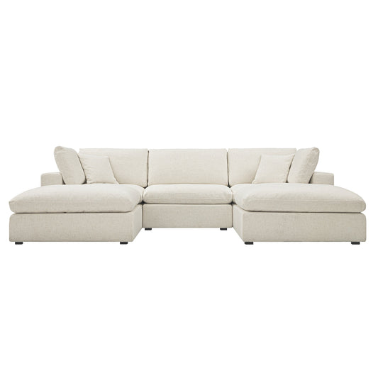 Lutyens Beige Linen Blend Modular Sofa, 6-Piece U-Shape Set