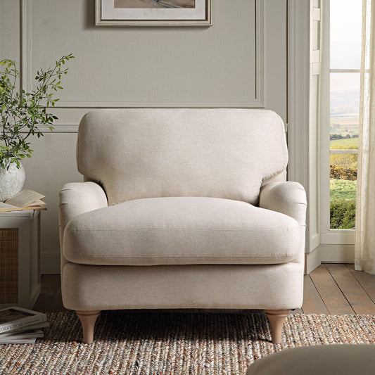 Amboise Armchair with Ball Cushion, Beige Linen Blend