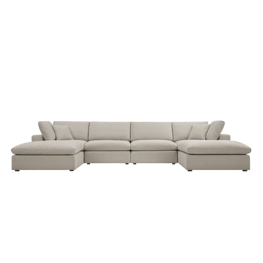Lutyens Oatmeal Weave Fabric Modular Sofa, 6-Piece U-Shape Set