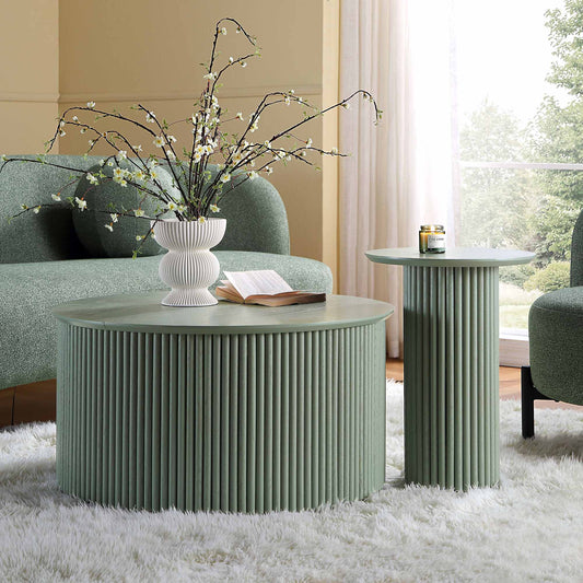 Maru Oak Round Coffee Table with Storage, Sage Green