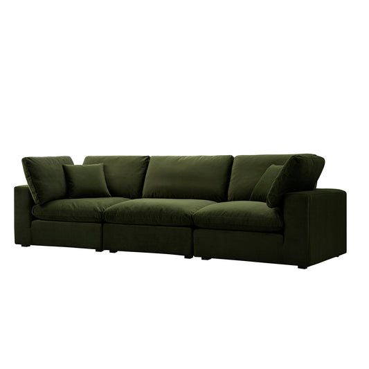 Lutyens Moss Green Velvet Modular Sofa, 3-Piece