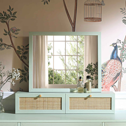Frances Woven Rattan 1-Door Bathroom Cabinet, Mint