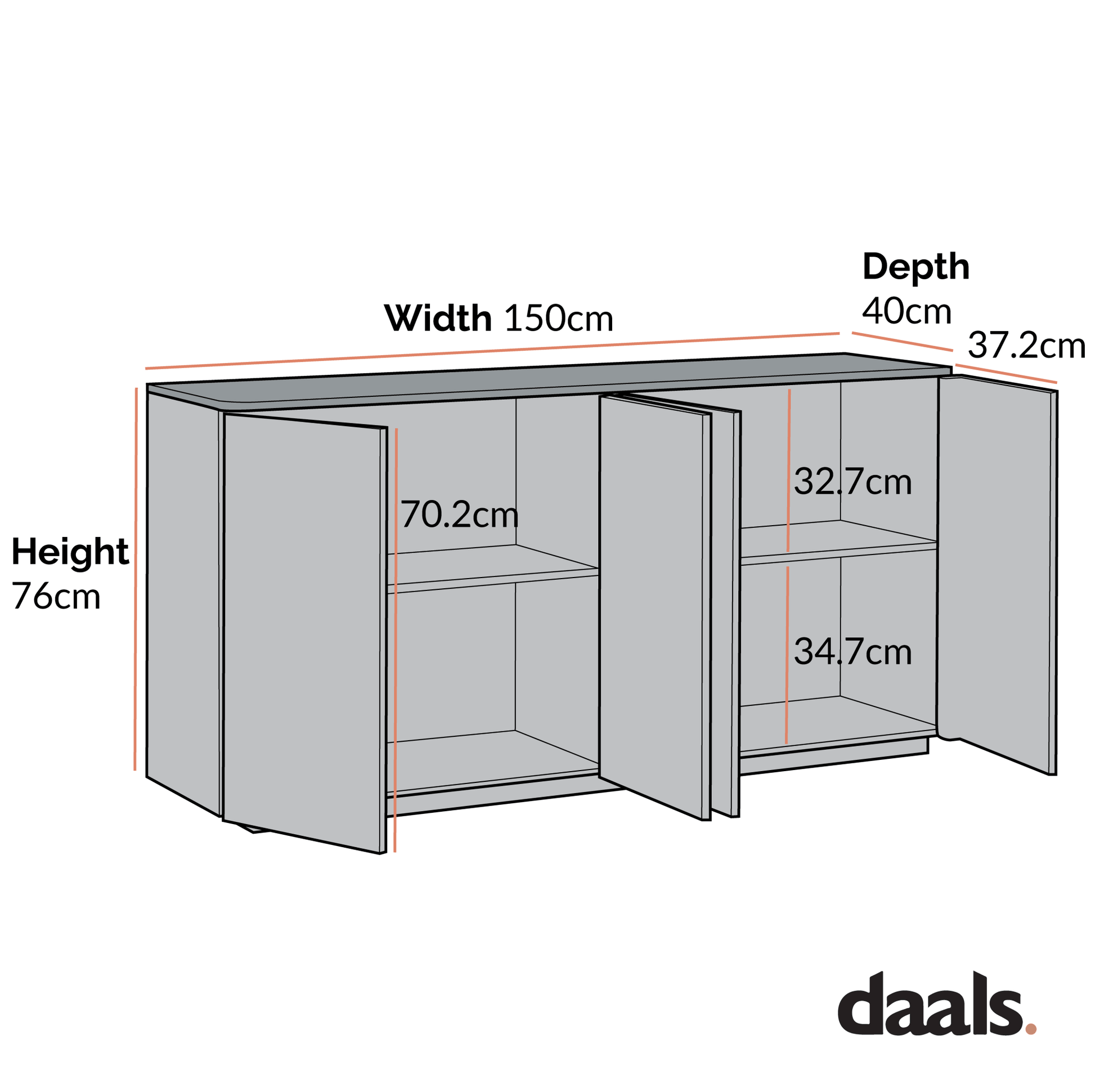 - Item size: W 150 x D 40 x H 76 cm.