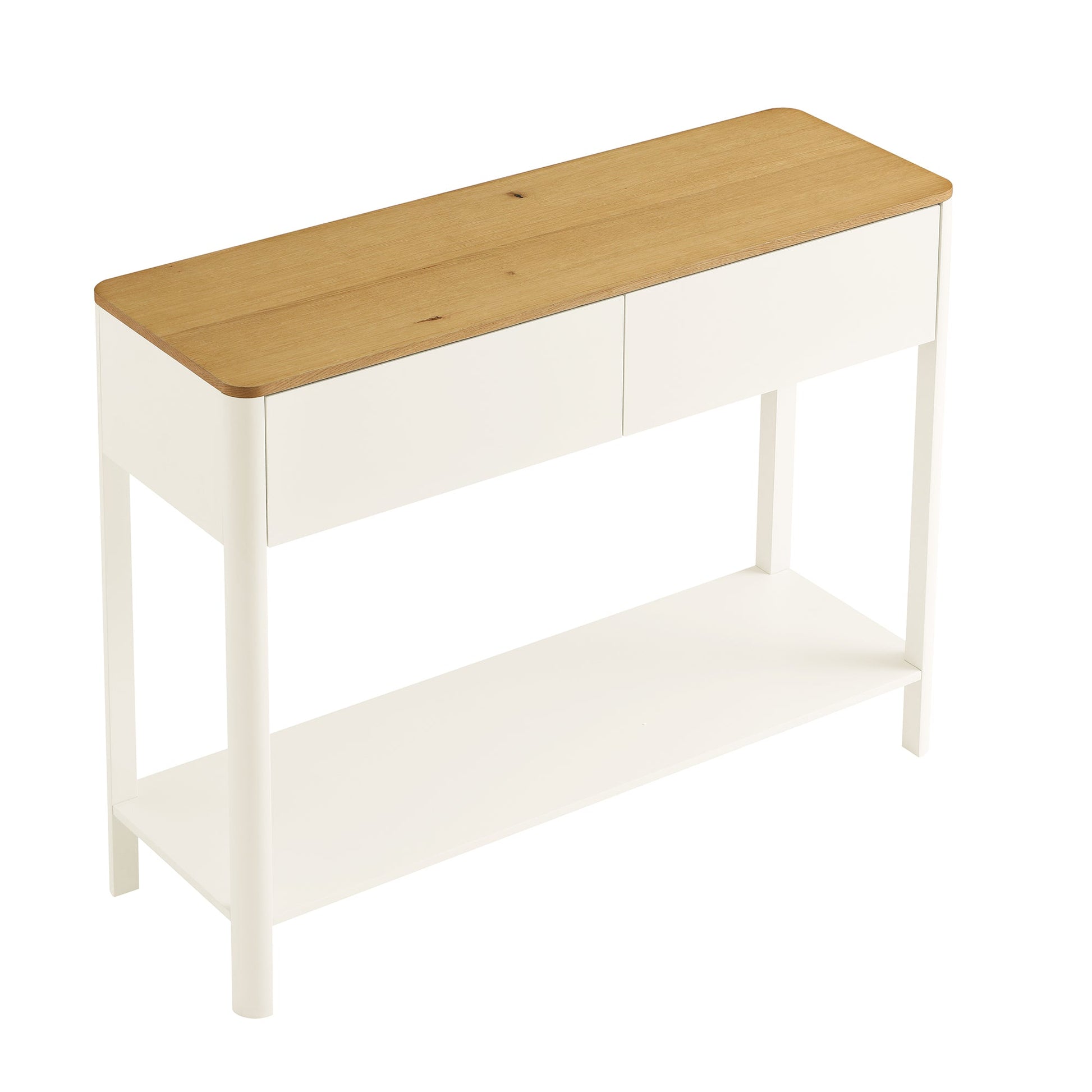 Agnes Curved Edge 2 Drawer Console Table, Off White with Oak Top
