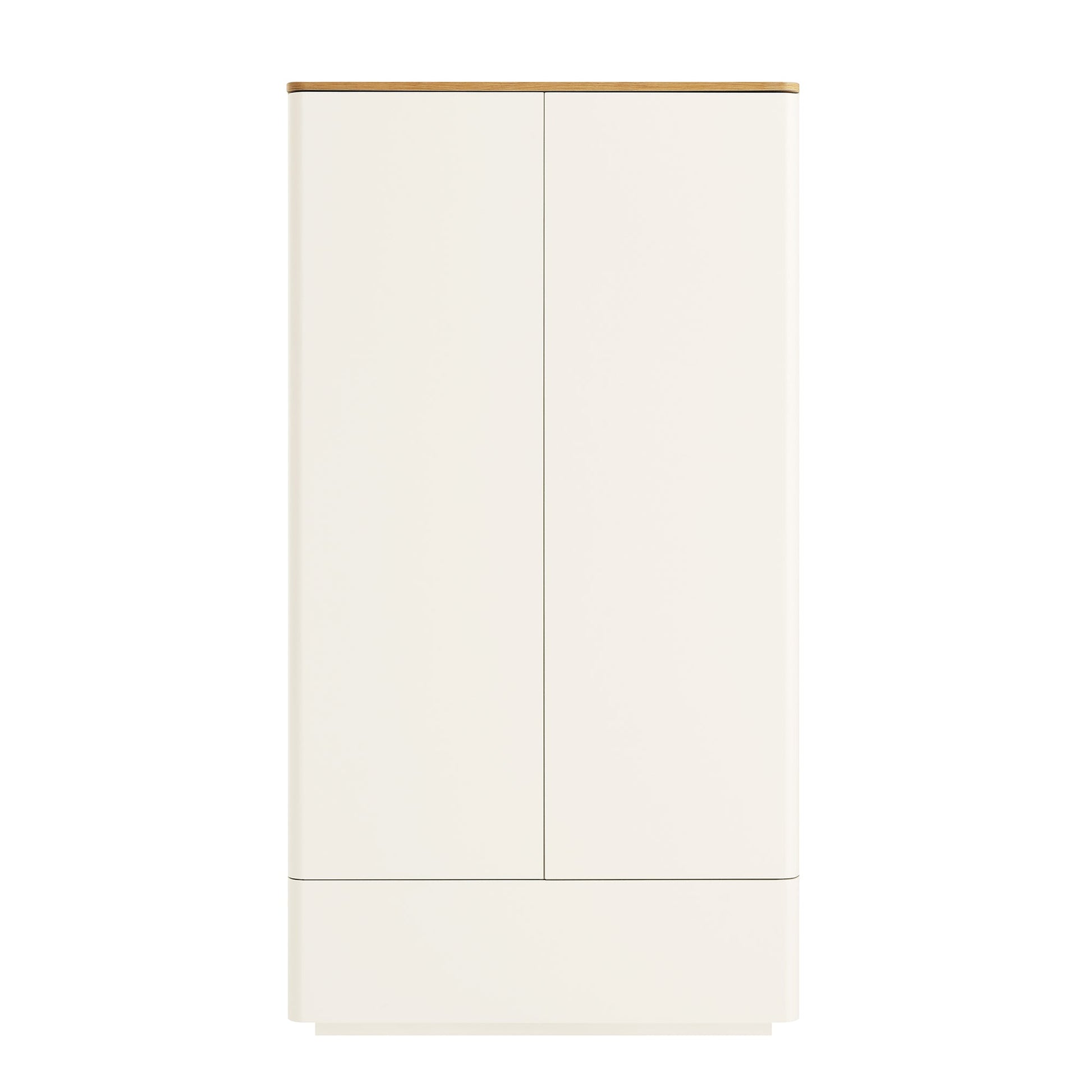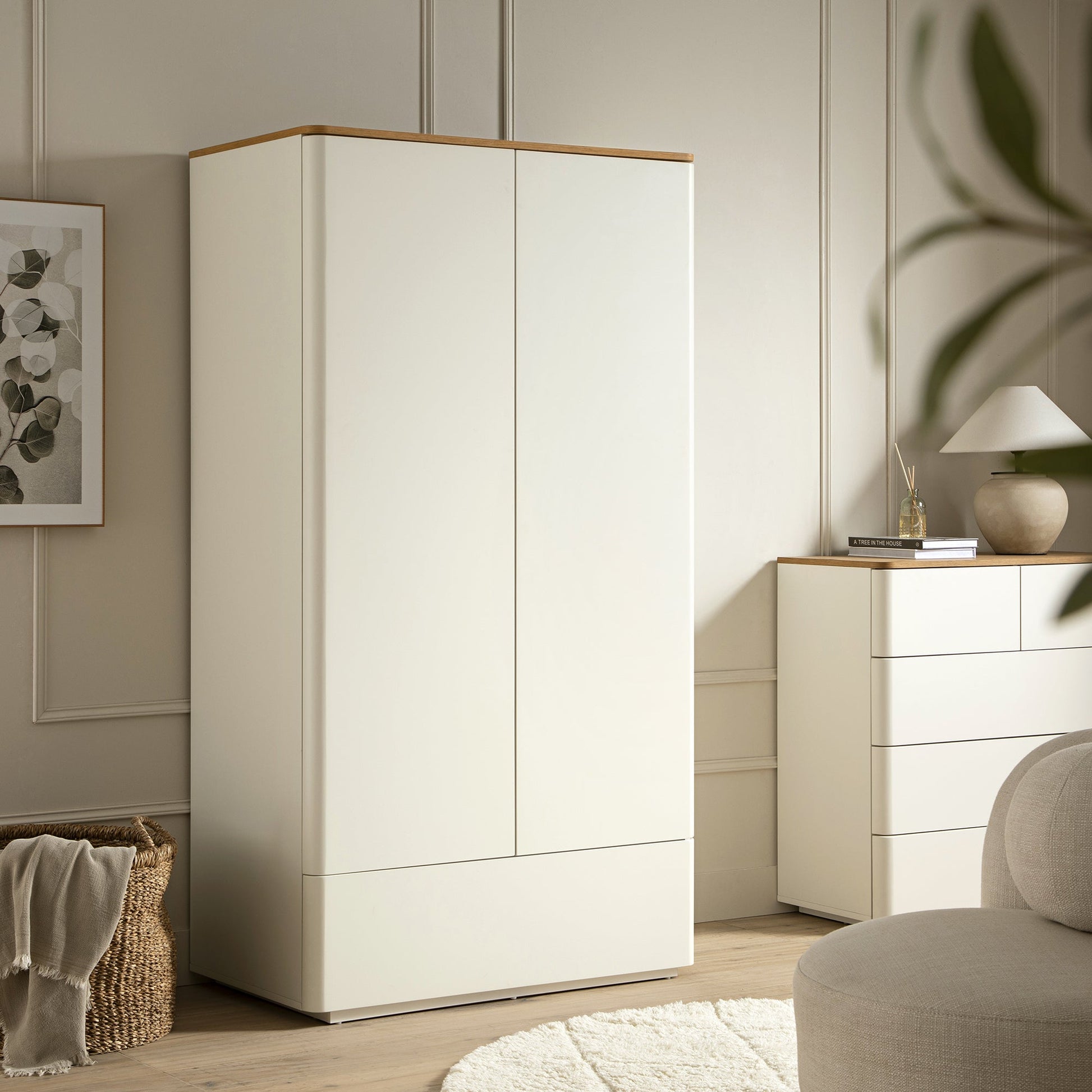 Agnes Curved Edge Double Wardrobe, Off White with Oak Top