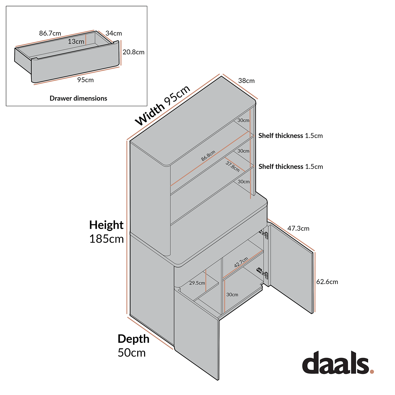 - Drawer internal size: W 86.7 x D 34.0 x H 13.0 cm