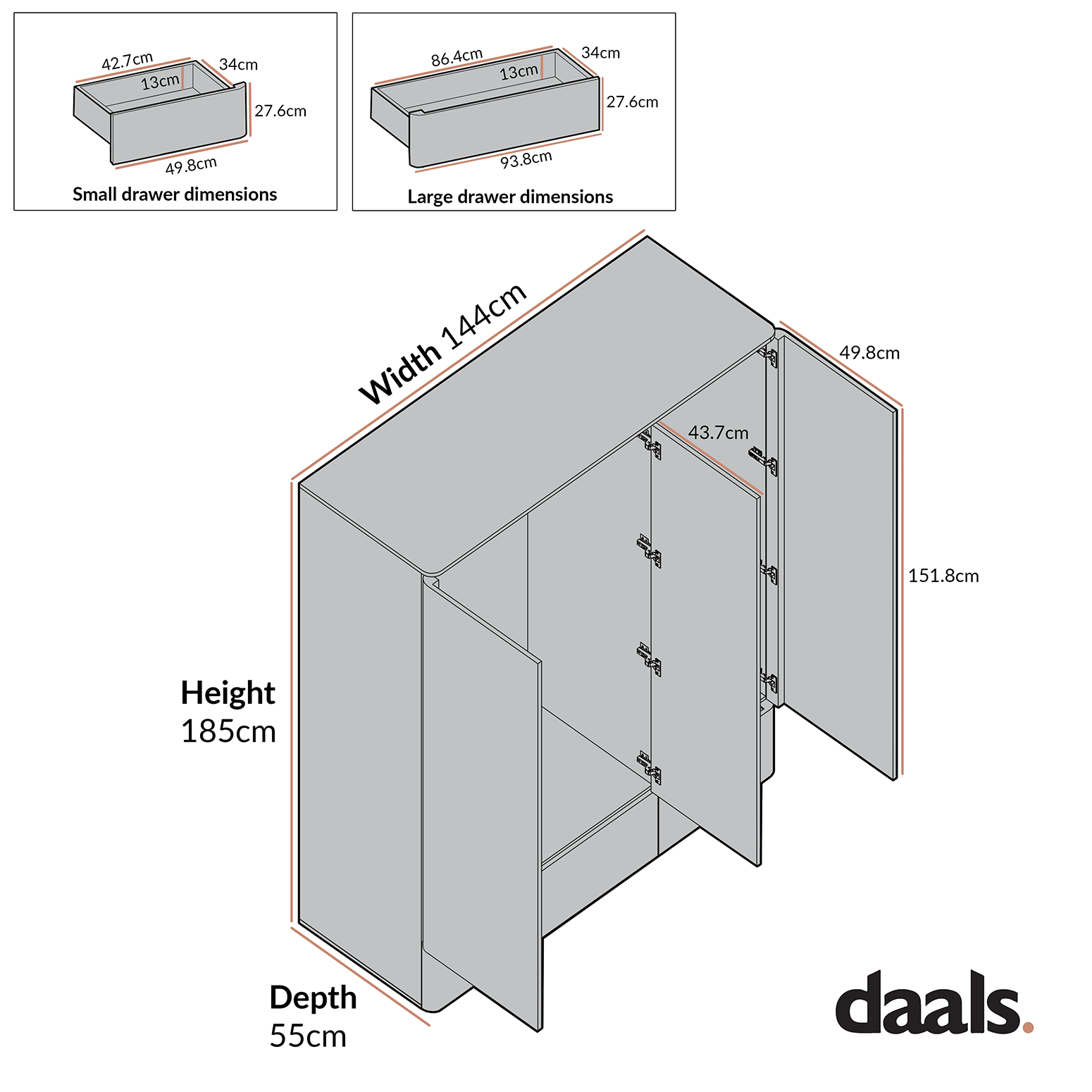 - With its clean design and soft lines, the Agnes triple wardrobe provides a stylish storage solution for the bedroom.