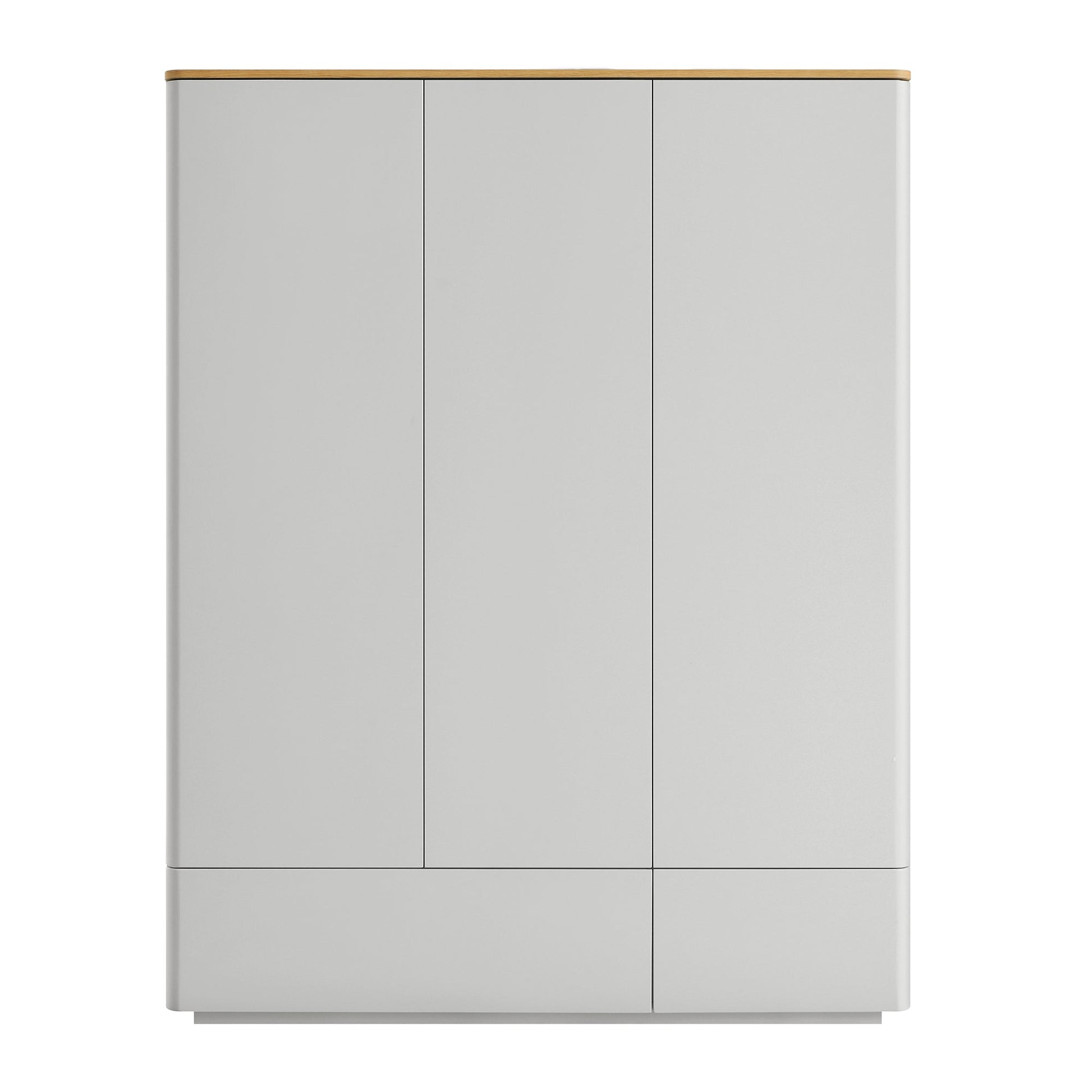 Agnes Curved Edge Triple Wardrobe, Dove Grey with Oak Top