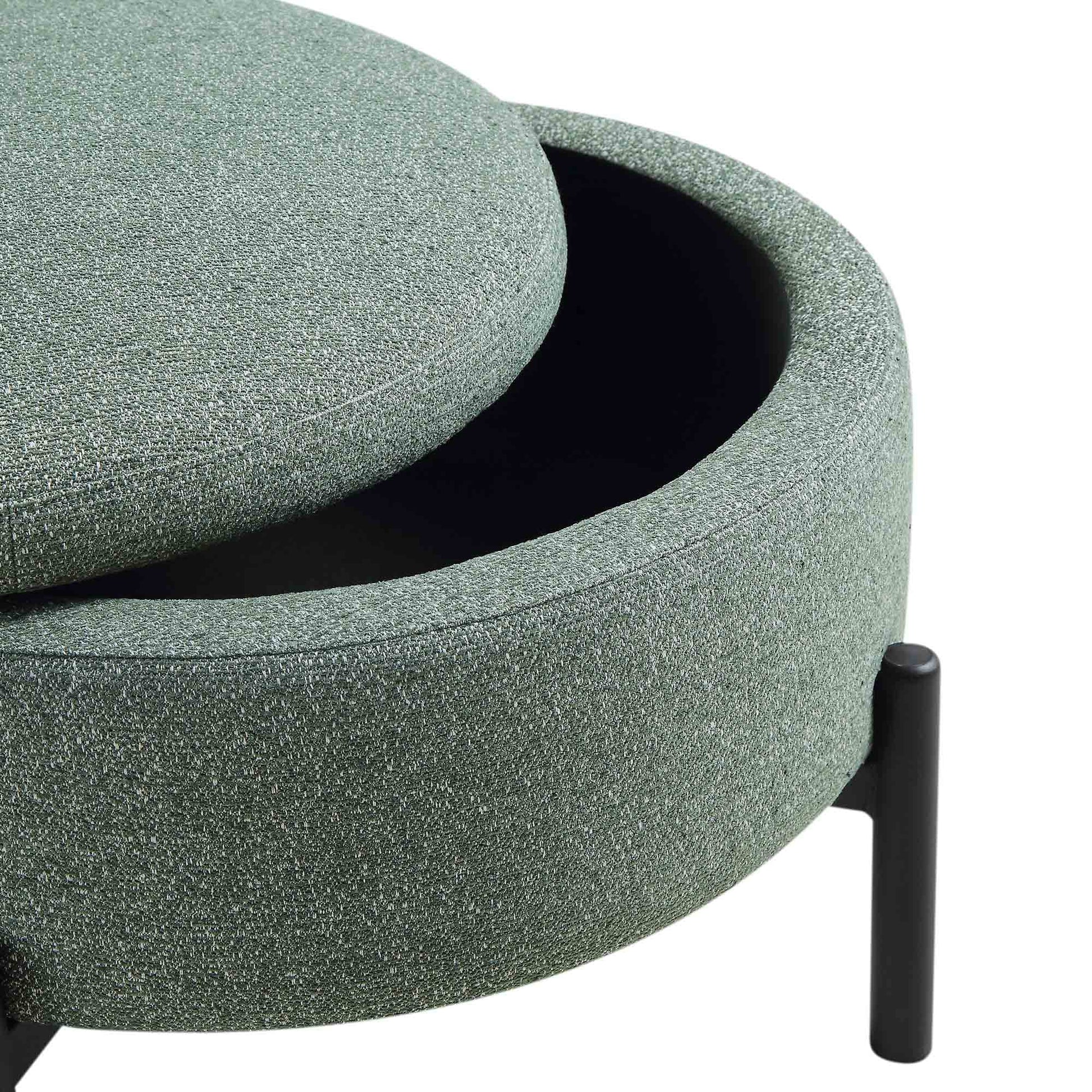 Amboise Round Storage Pouffe, Spruce Green Textured Fabric