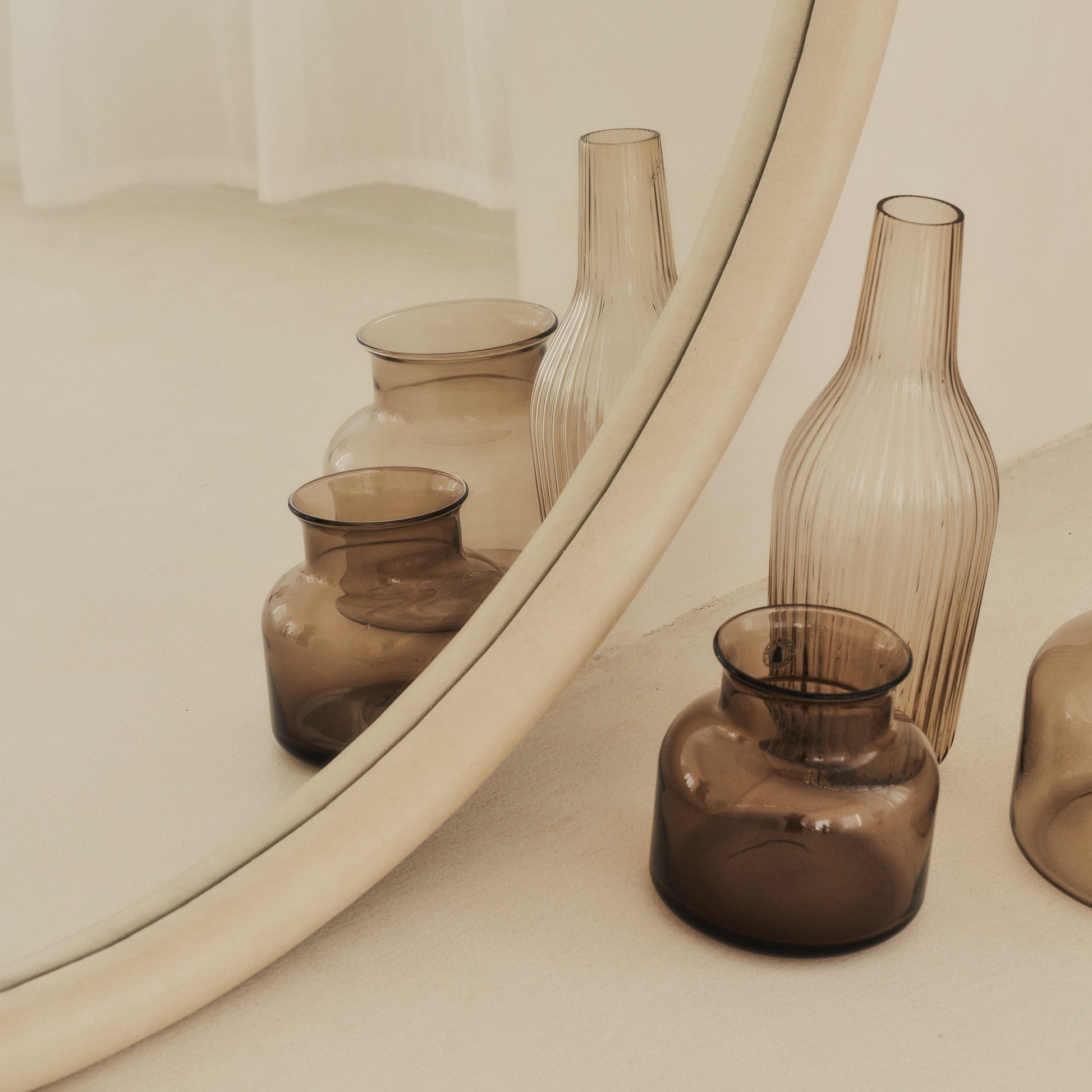 Introducing the Amora round large wall mirror in a concrete finish, a beautifully sculpted piece that brings balance and softness to any room. Crafted from high-quality natural materials, its perfectly rounded form offers a calming sense of symmetry and subtle sophistication.
