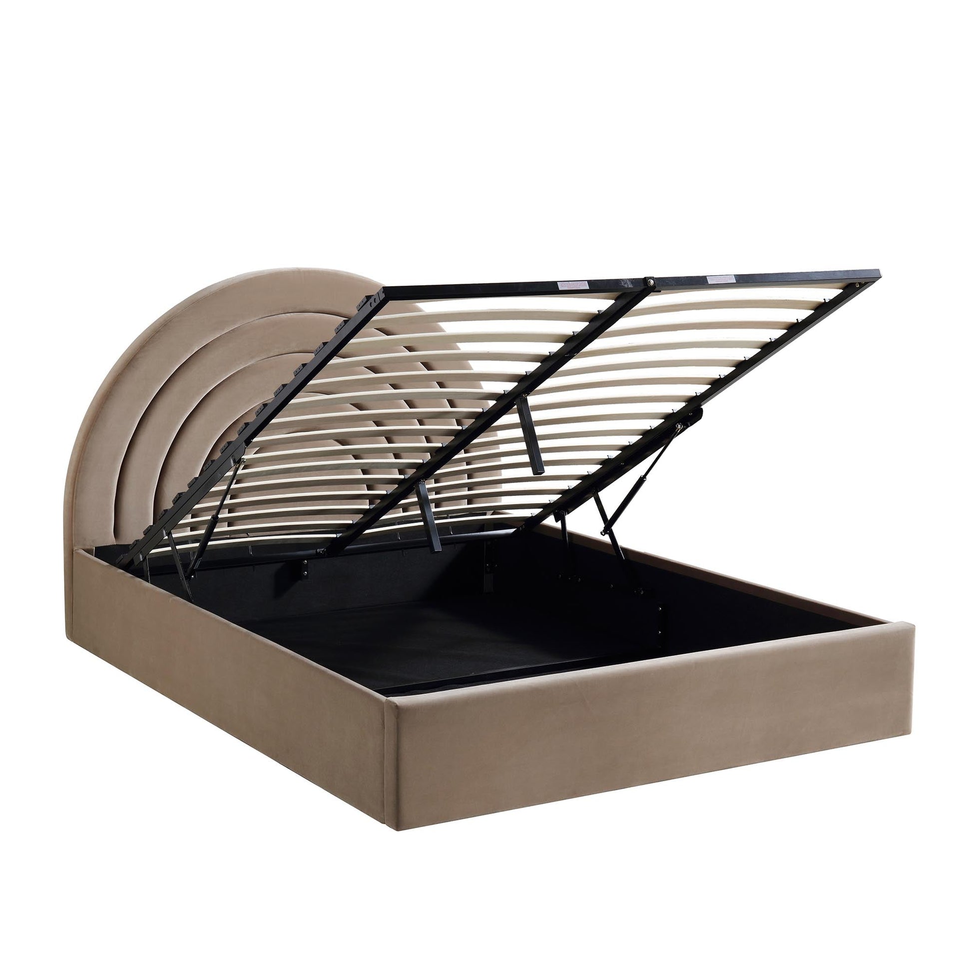 - The bed is upholstered with sumptuous velvet touch fabric in beautiful mink colour from headboard to base to make it the statement piece in any bedroom.