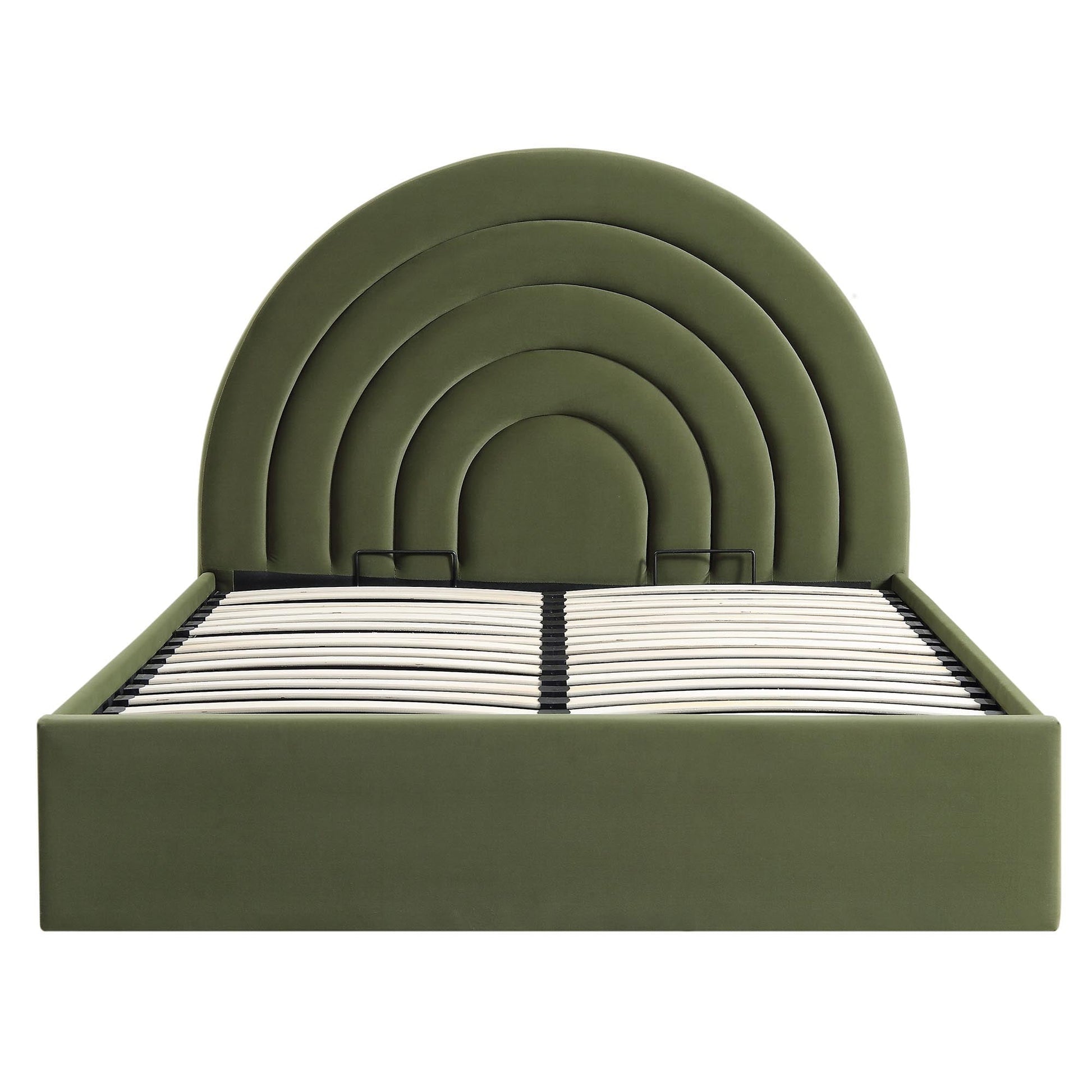- The Archer bed features eye-popping arched rainbow shape fluted headboard design and functional under-bed storage.