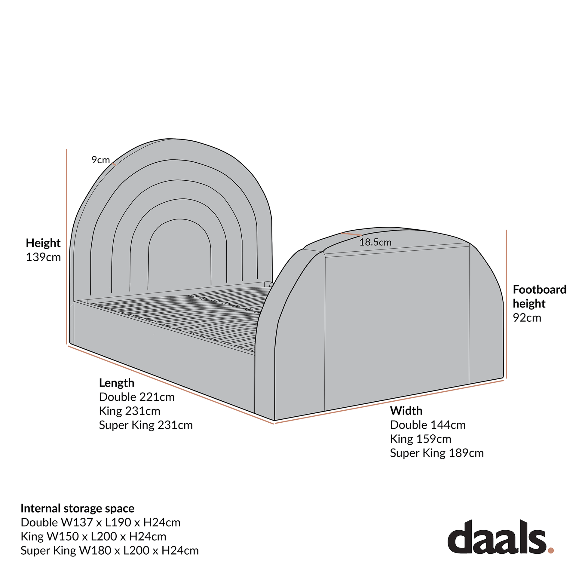 - Internal storage space (6FT Super King): W 180.0 x D 200.0 x H 24.0 cm