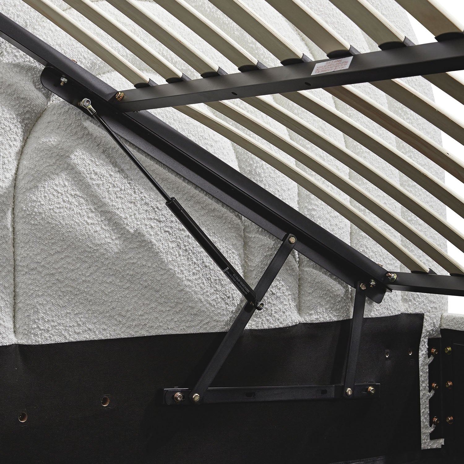 - Curved, sculptural, and effortlessly modern, the Archer White Boucle TV Bed with Ottoman Storage brings style, comfort, and technology together in one striking design.
