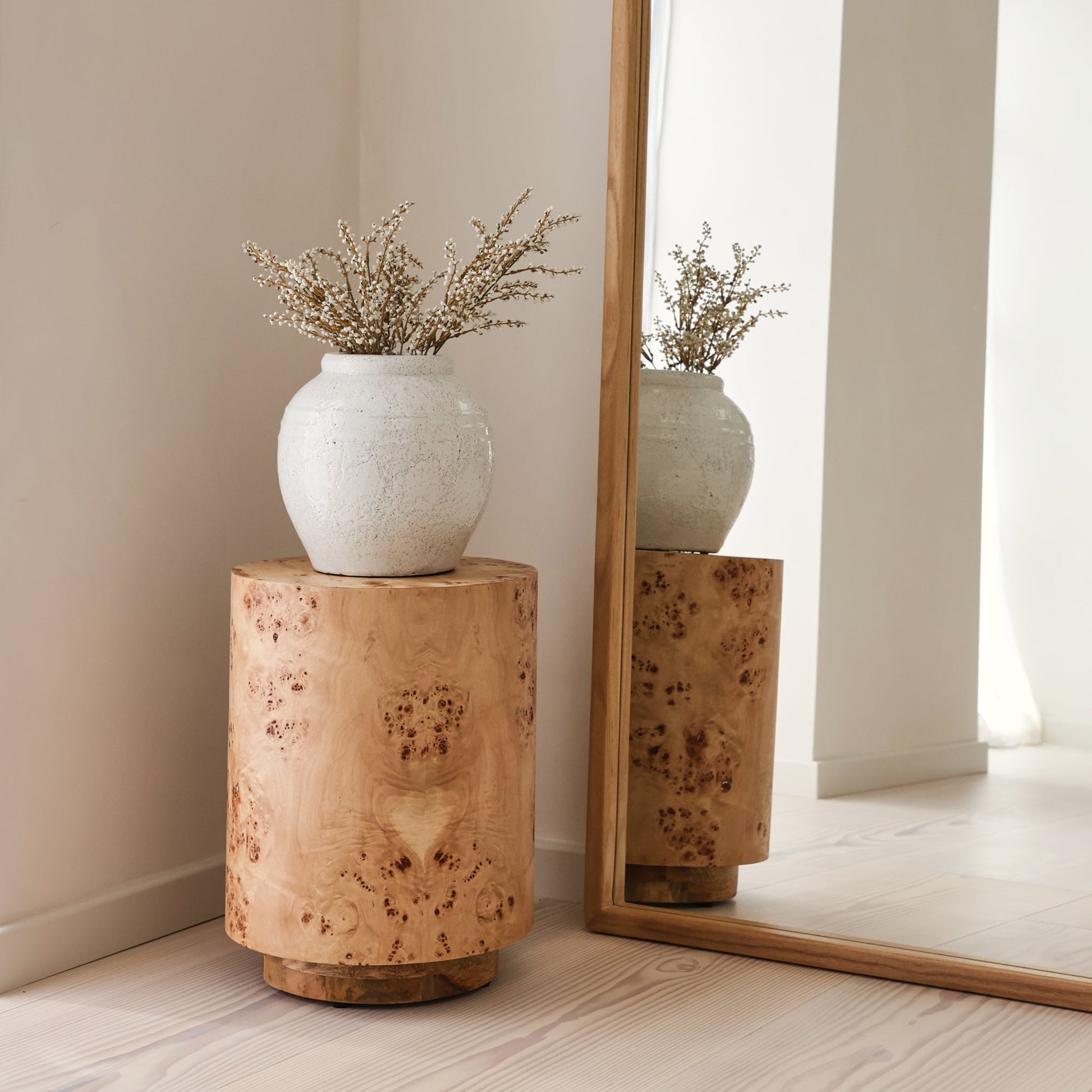 The Arden Collection highlights natural sophistication, featuring a finely carved, minimalist frame made from premium paulownia wood, complemented by high-quality 4mm silvered mirror glass.