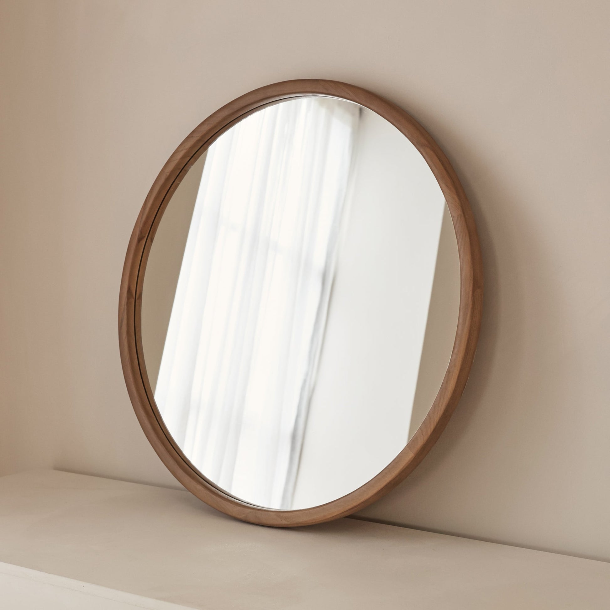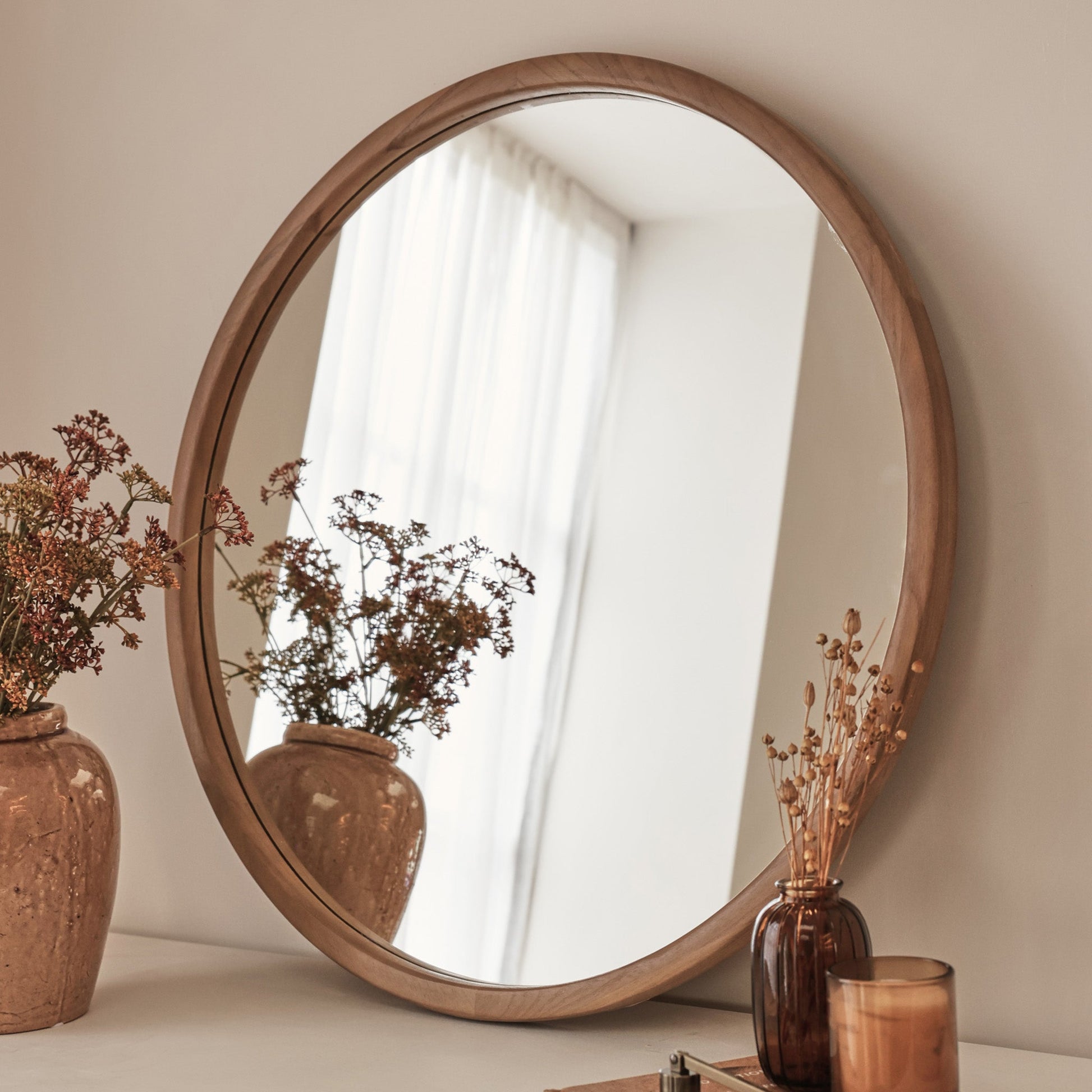Arden - Warm Wood Round Wooden Wall Mirror 70cm x 70cm