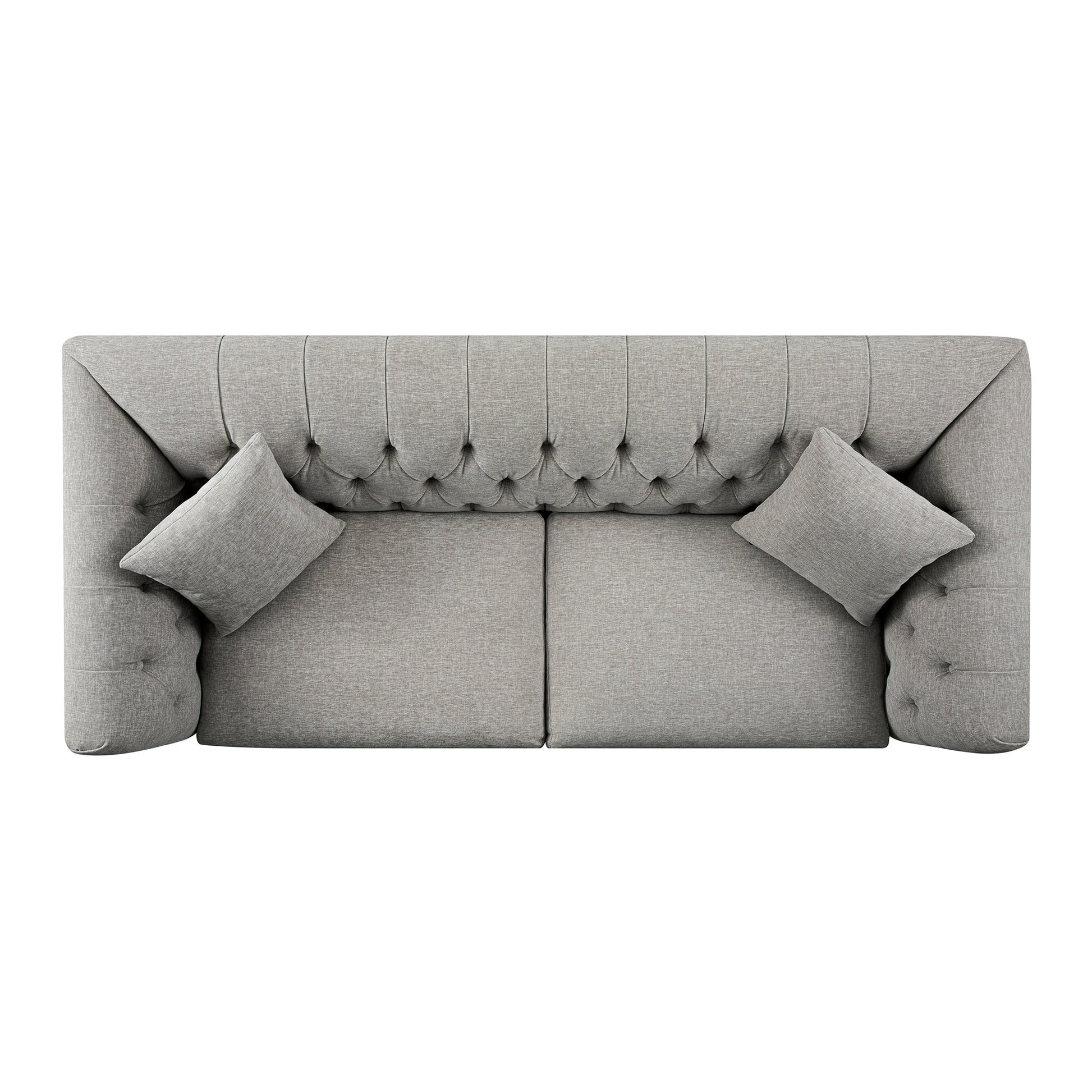- Boasting opulent tufted back and arms, the sofa offers deep cushioned, supportive seat.