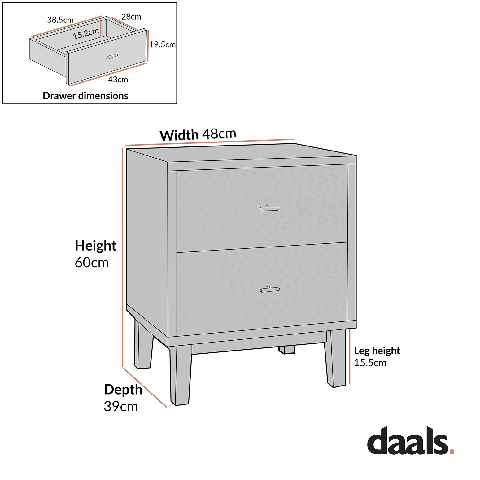 The 2 drawers provide ample storage space for your bedside essentials, while the spacious top surface is perfect for a lamp, phone, or book.
