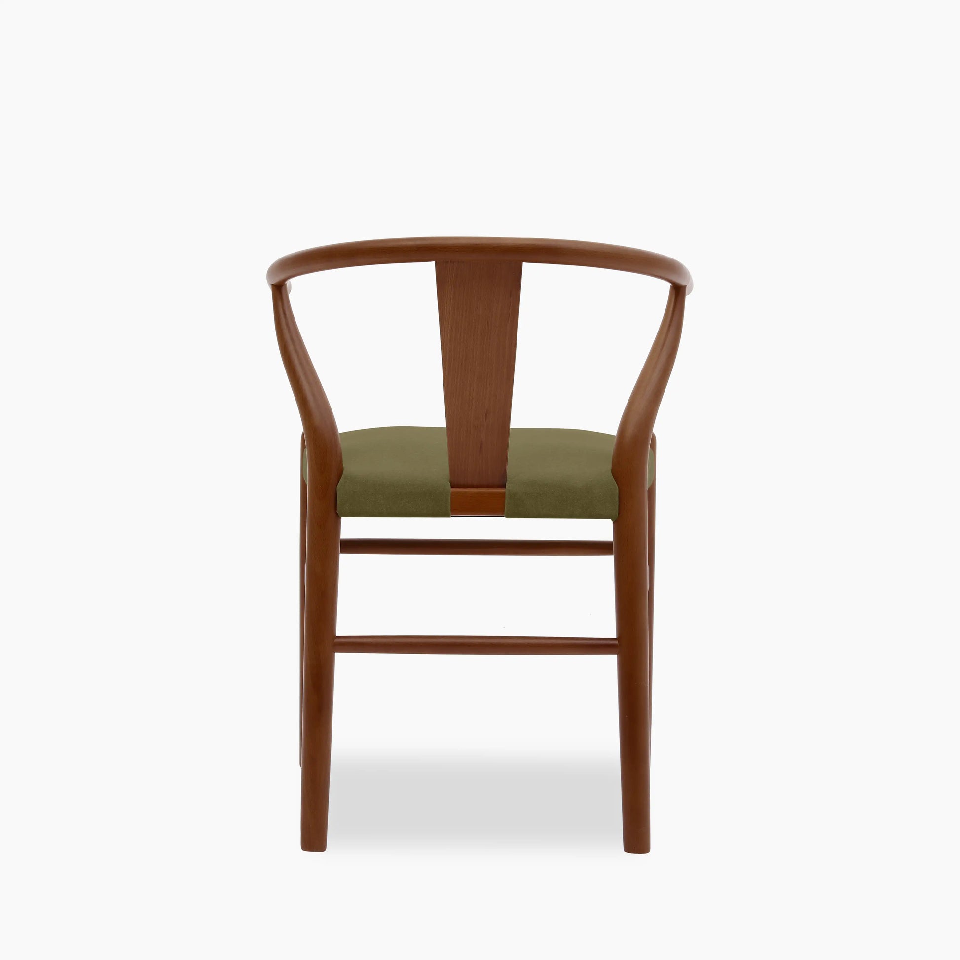 Bjorn Wooden Dining Chair | Moss Green Sustainable Mohair Velvet & Walnut