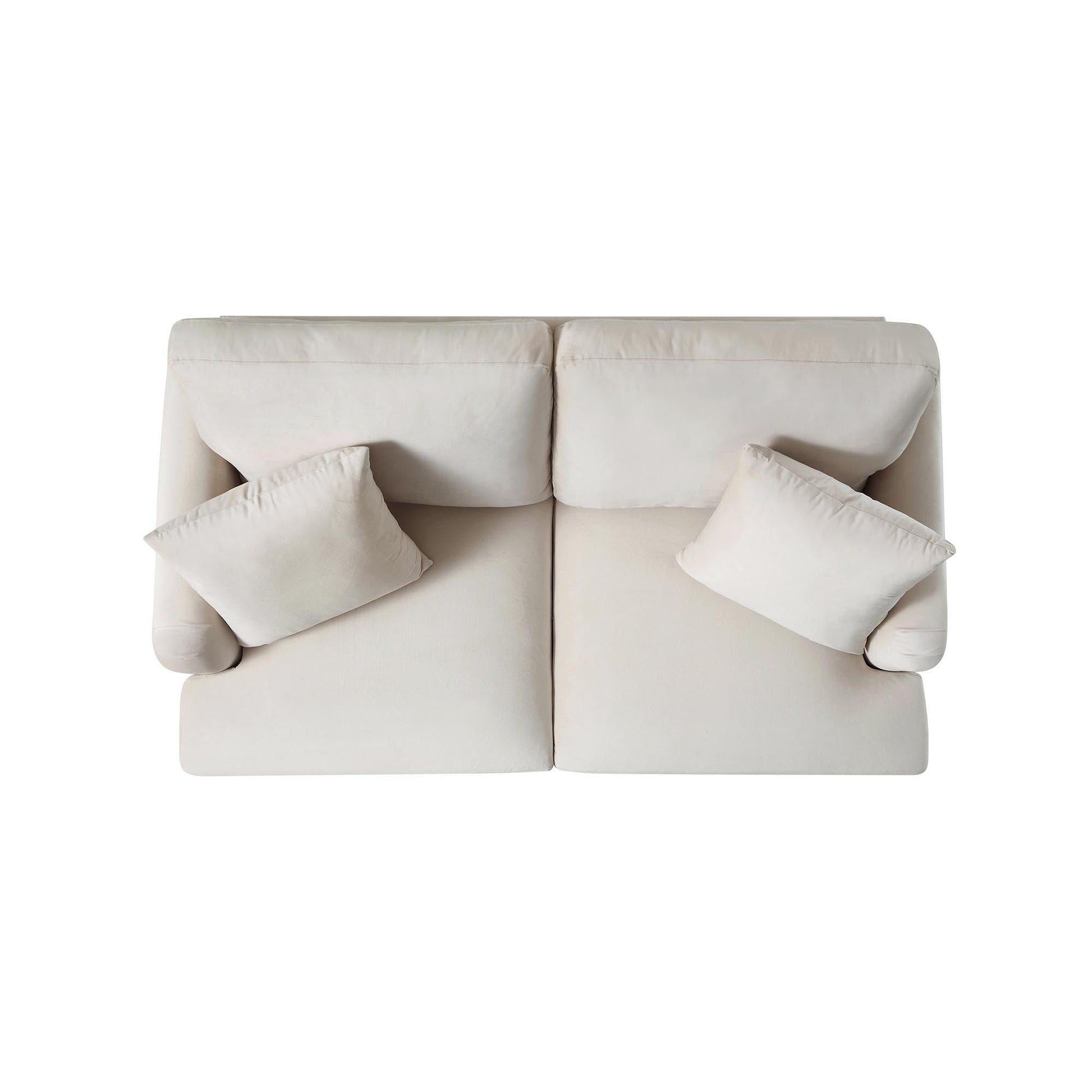 - Crafted from solid wood and metal frame, the cushions are filled with foam and upholstered with soft cosy velvet feel fabric in cream beige colour.