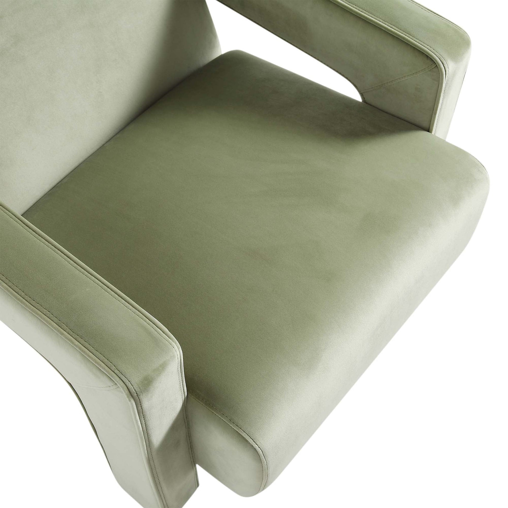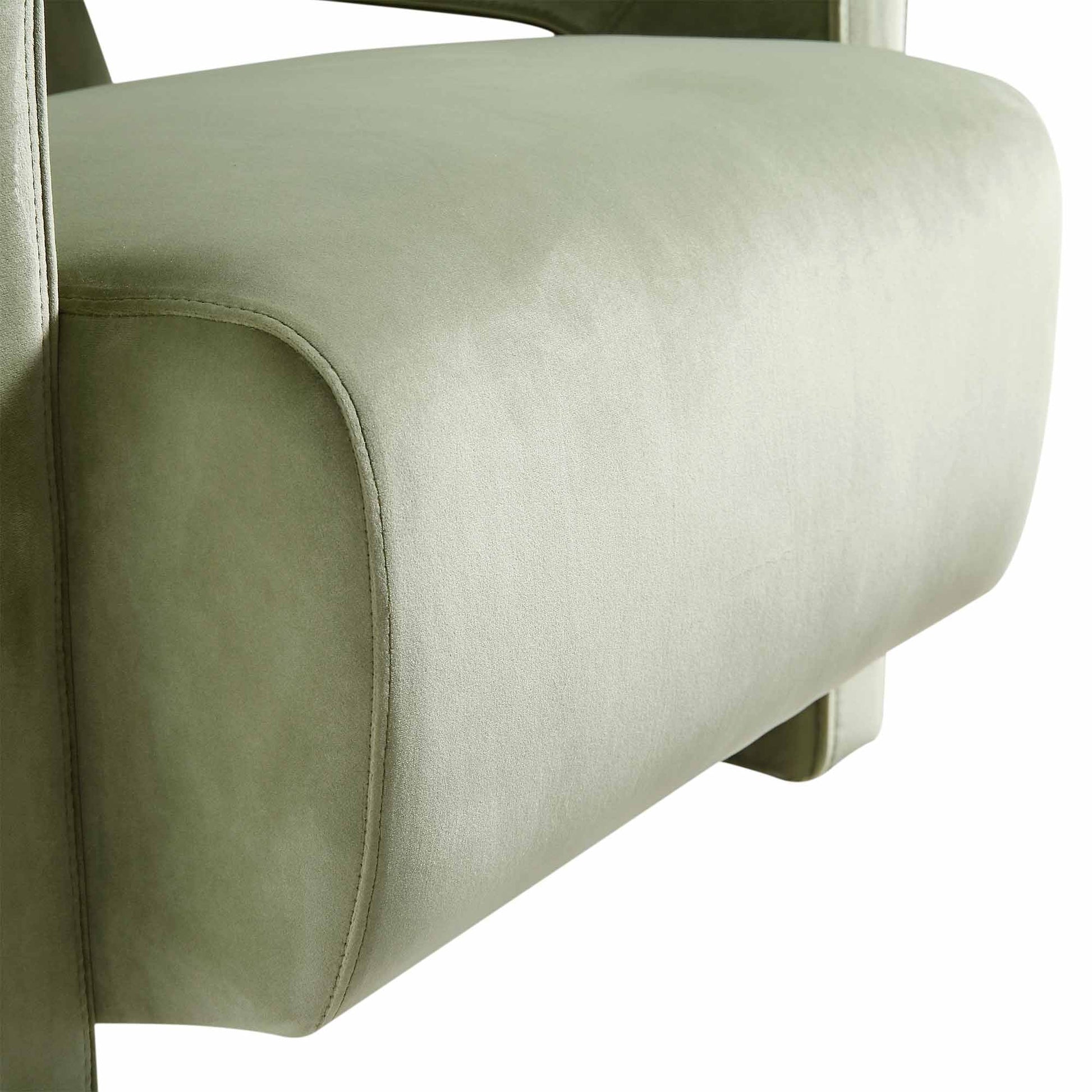- The chair is upholstered with sumptuous velvet fabric in lichen colour for a luxe look.