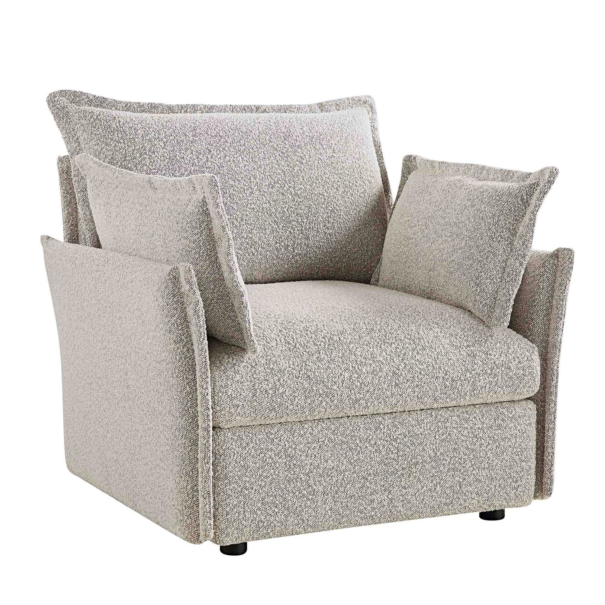Byron Pillow Edge Mist Grey Boucle Modular Sofa, 1-Seater