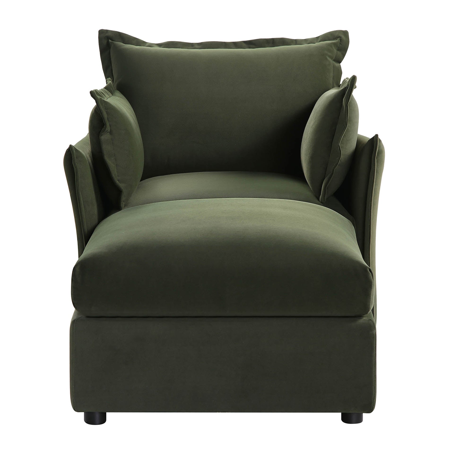 Byron Pillow Edge Moss Green Velvet Modular Sofa, 1-Seater Chaise