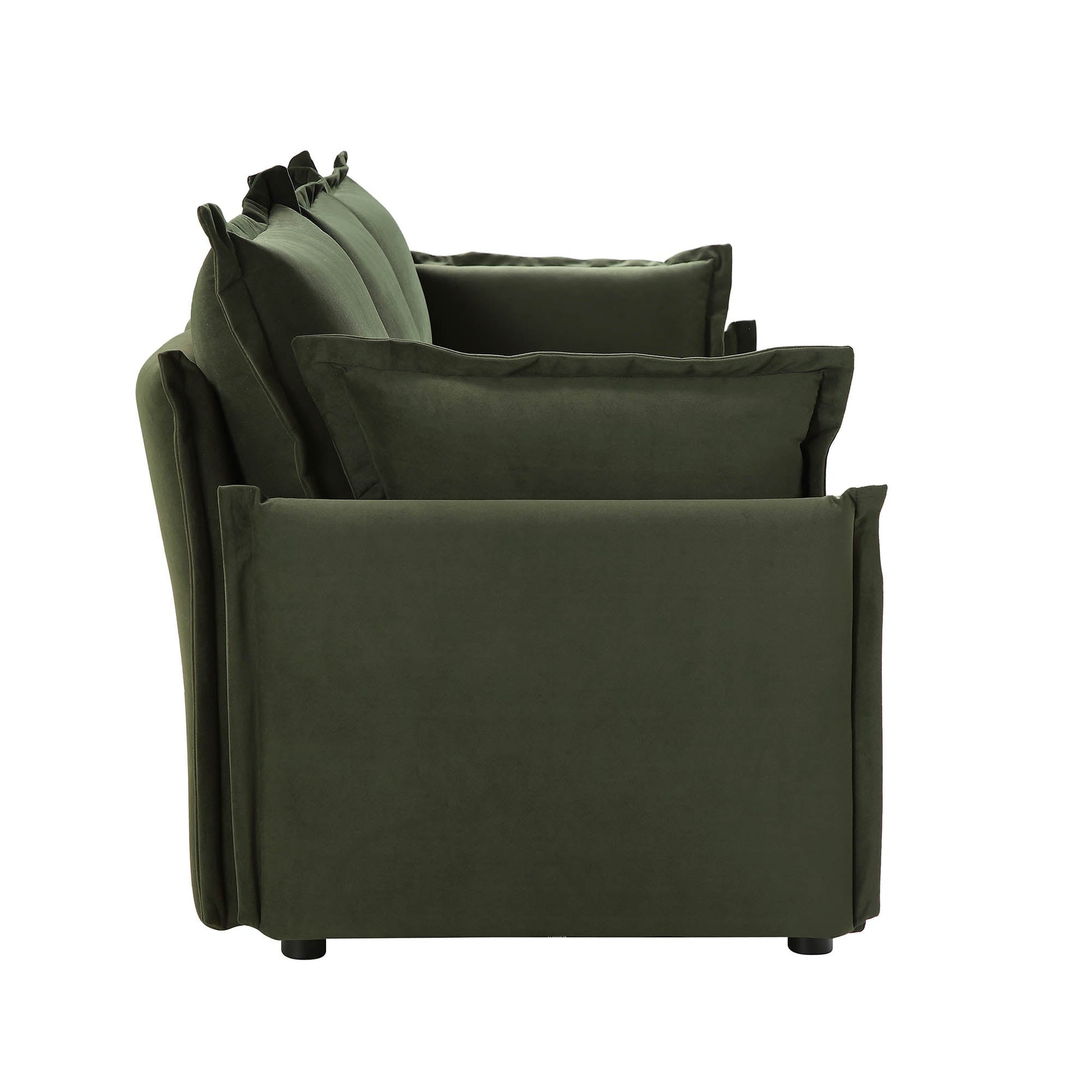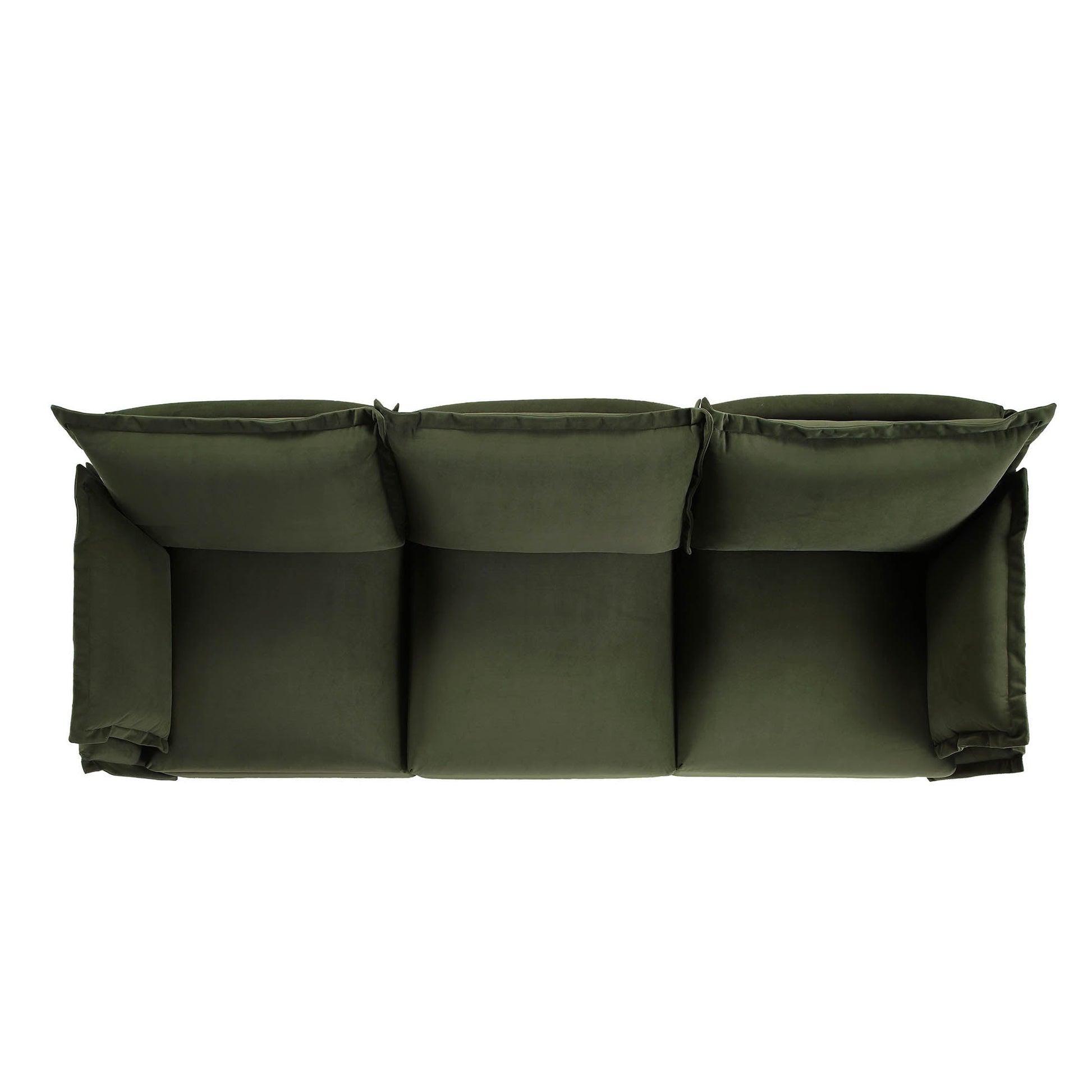 Byron Pillow Edge Moss Green Velvet Modular Sofa, 3-Seater